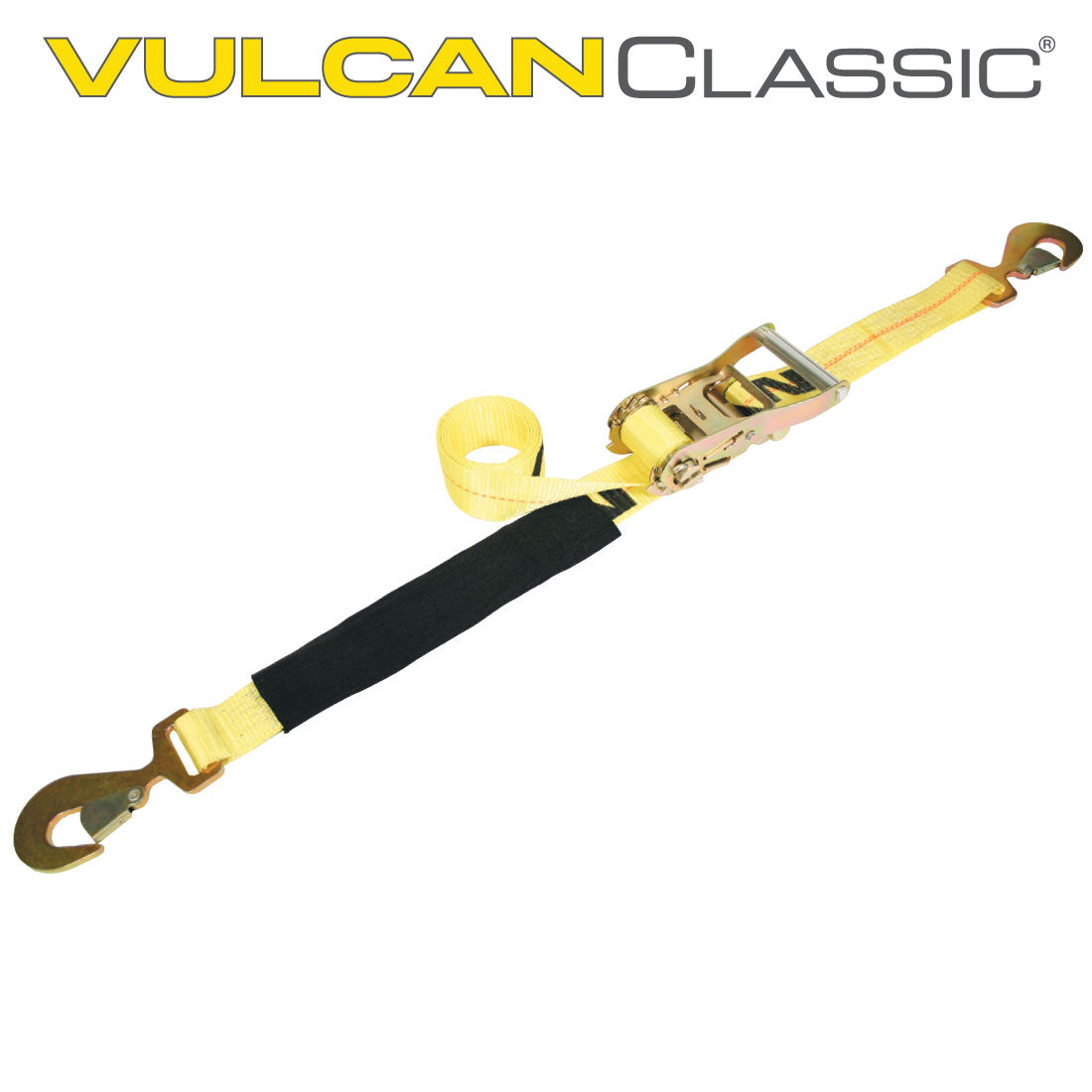 VULCAN Car Tie Down with Flat Snap Hook Ratchet - Snap Hook - 72 Inch - 3,300 Pound Safe Working Load