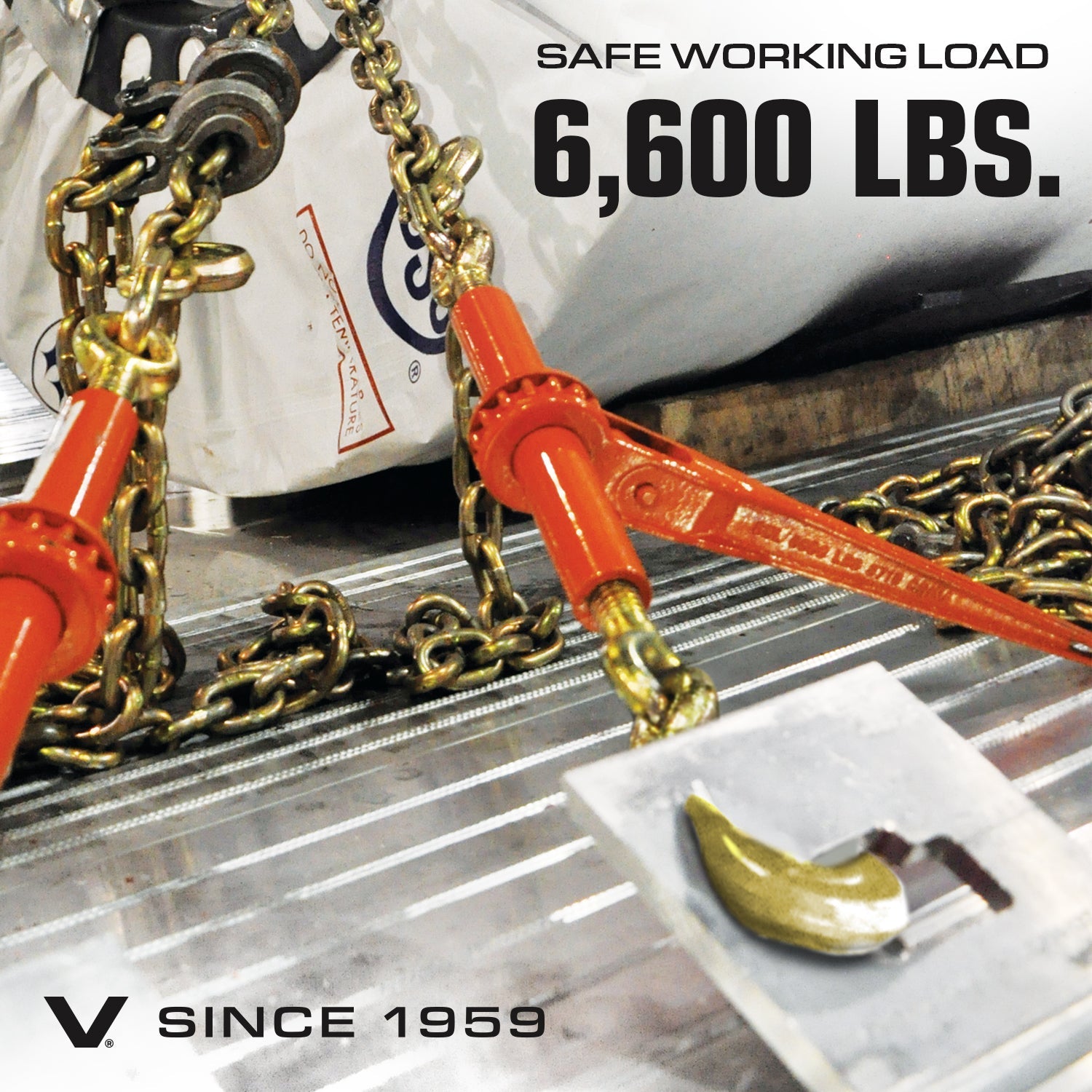 - SAFE AND COMPLIANT - The safe working loads of 6,600 pounds and 4,000 pounds correspond with the embossed code on the chain links, binder handle, markings on the hooks and raised lettering on the D rings. All Vulcan cargo control products meet all CVSA and DOT specifications, and comply with NACM recommendations. You will be compliant for any roadside inspection, and you can work with confidence using Vulcan products - a name you can trust.
