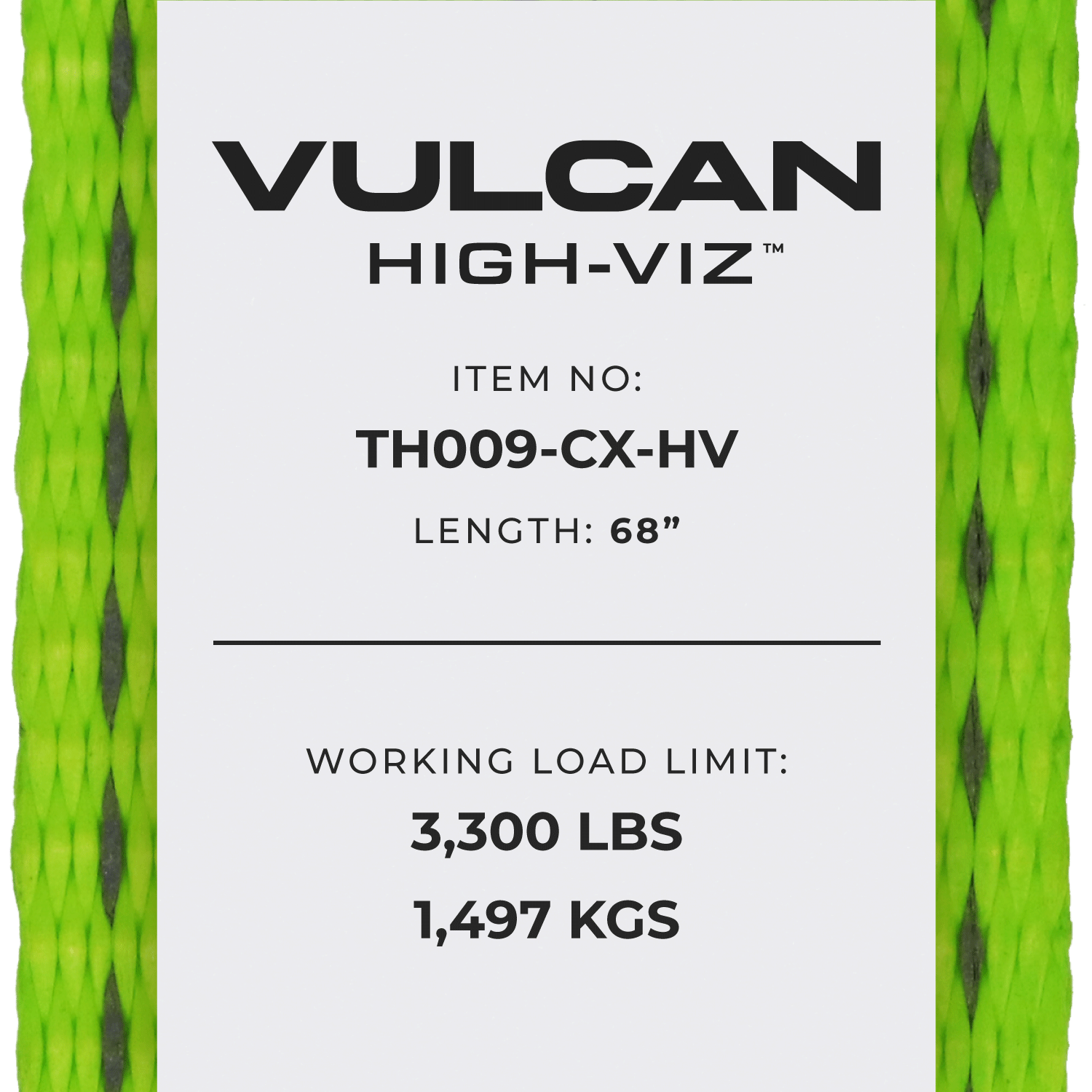 - SAFE AND COMPLIANT - These tire harnesses are designed for hauling any vehicle on a flat bed, and they allow the vehicle to ride on its own suspension, eliminating shock transfer. Each assembly has a safe working load of 3,300 lbs. that is stamped on the warning tag of each strap for easy inspection, and all Vulcan straps meet all CVSA and DOT specifications.