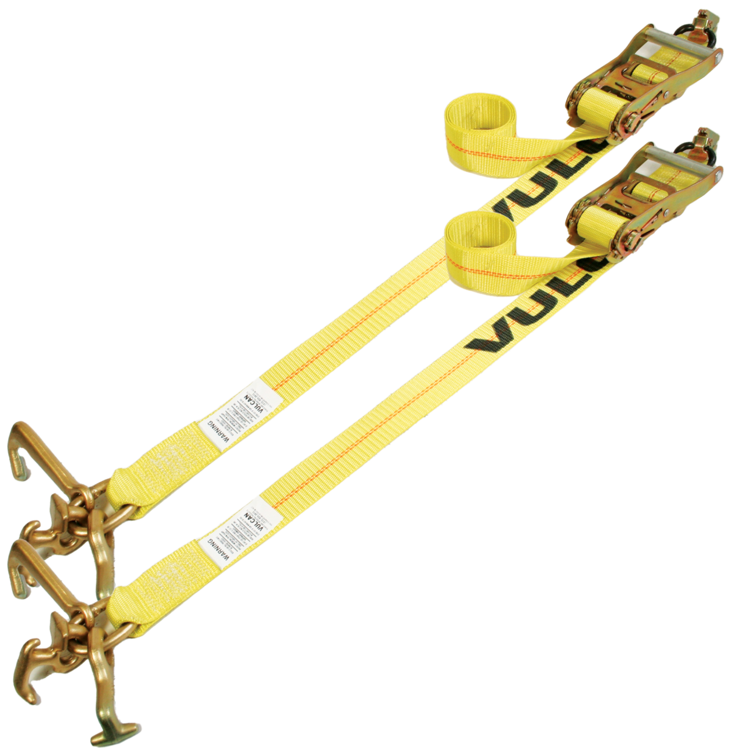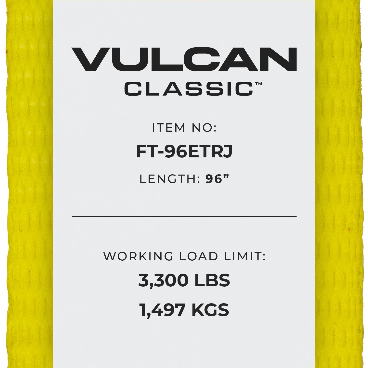 VULCAN Car Tie Down with Universal Frame Hook Cluster For E Track - 96 Inch - 2 Pack - Classic Yellow - 3,300 Safe Working Load