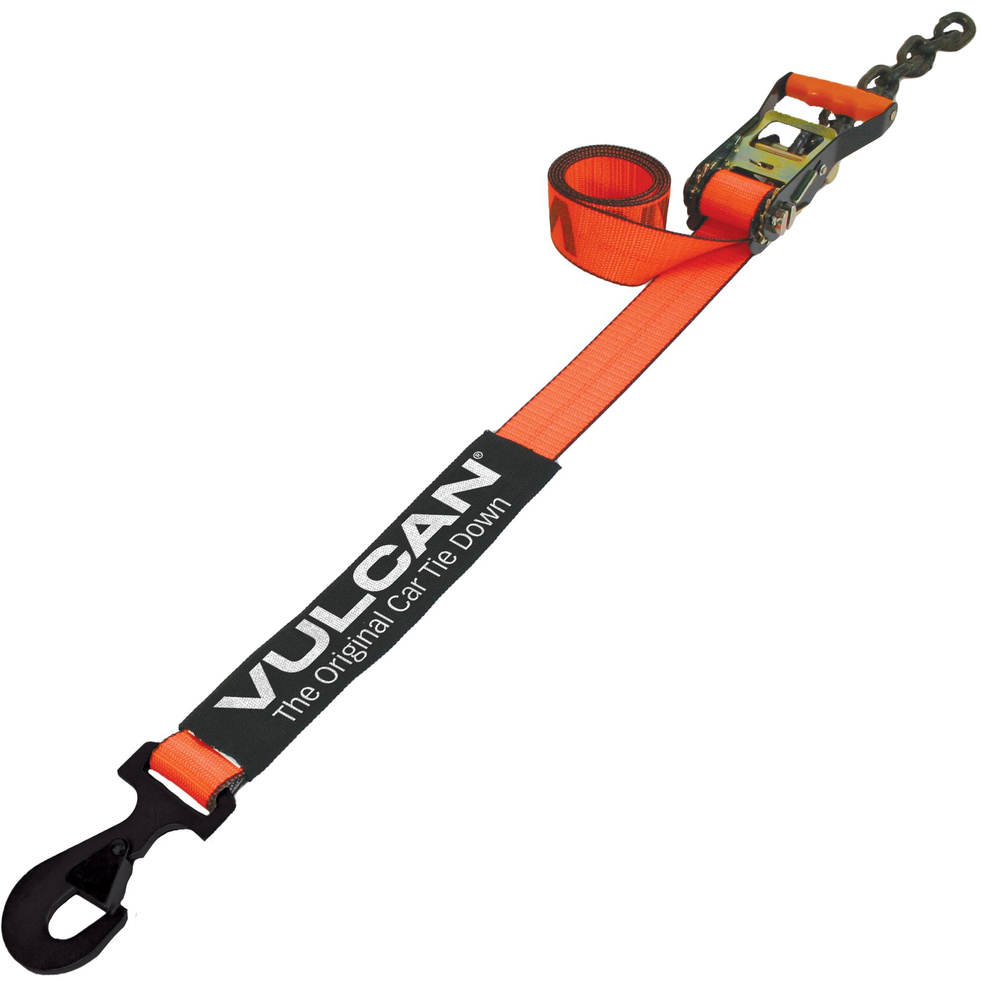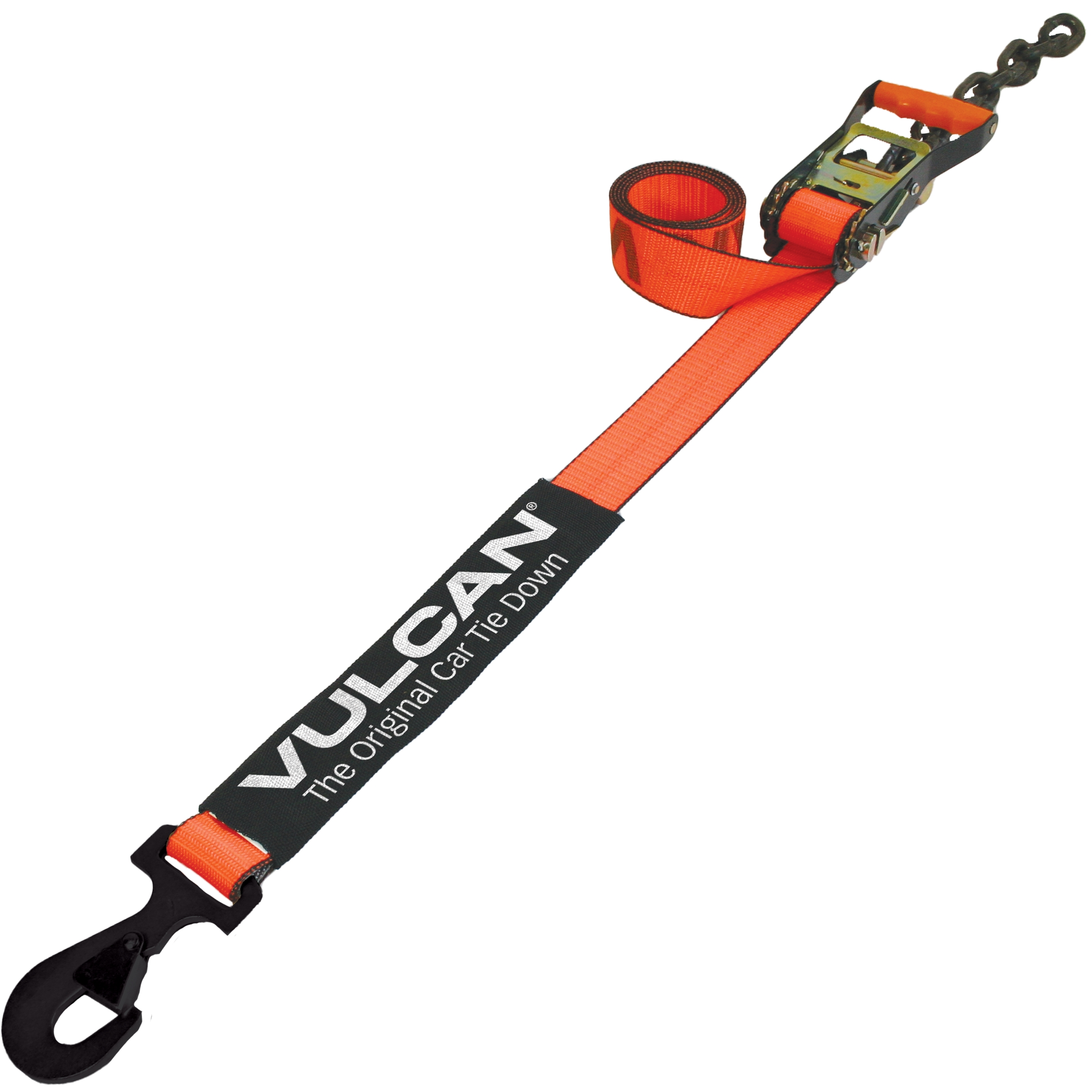 VULCAN Car Tie Down with Chain Tail Ratchet - Snap Hook - 96 Inch - PROSeries - 3,300 Pound Safe Working Load