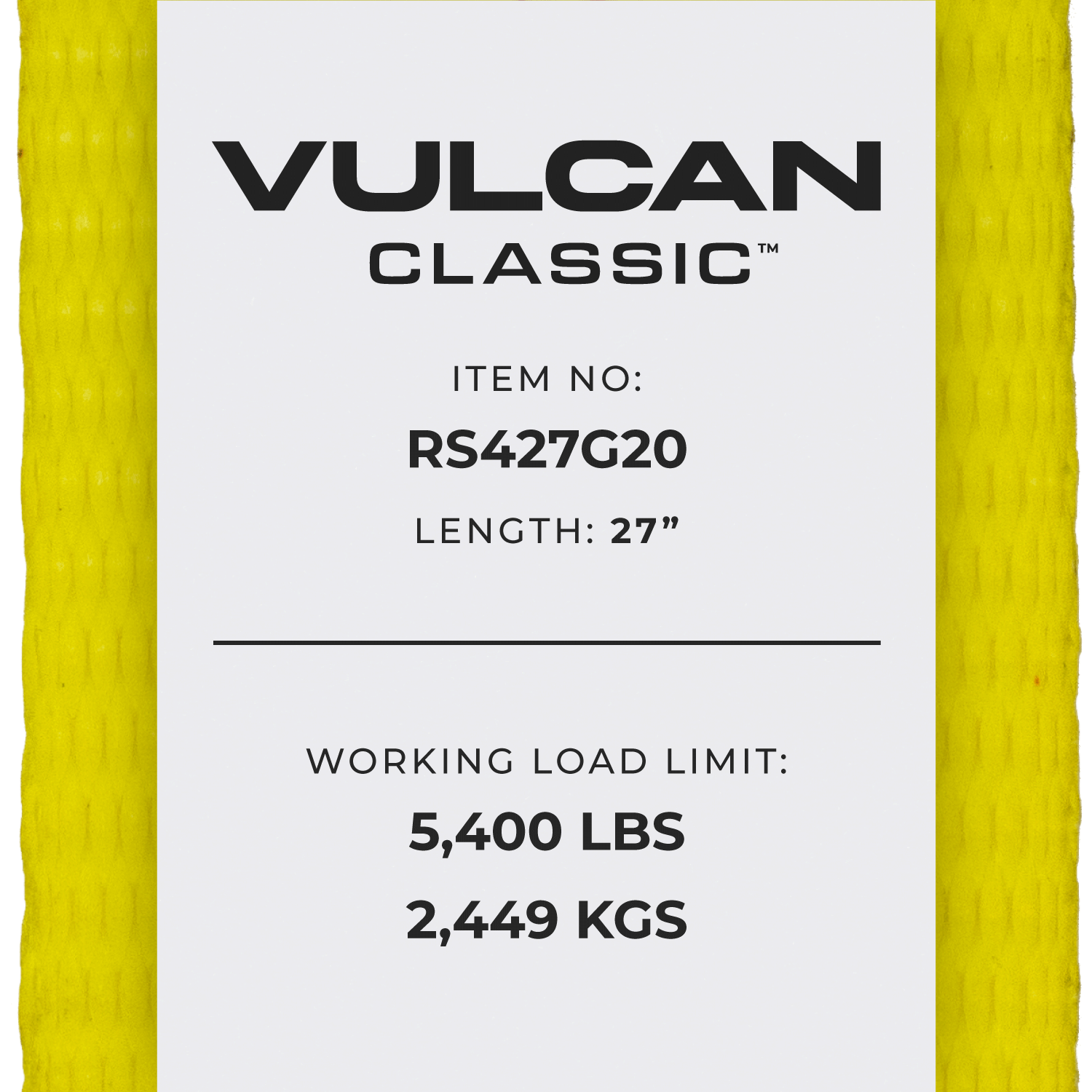 - SAFE AND COMPLIANT - This ratchet strap has a 5,400 pound Safe Working Load. All Vulcan cargo control products meet all CVSA and DOT specifications, and comply with NACM recommendations. You will be compliant for any roadside inspection, and you can work with confidence using Vulcan products - a name you can trust.
