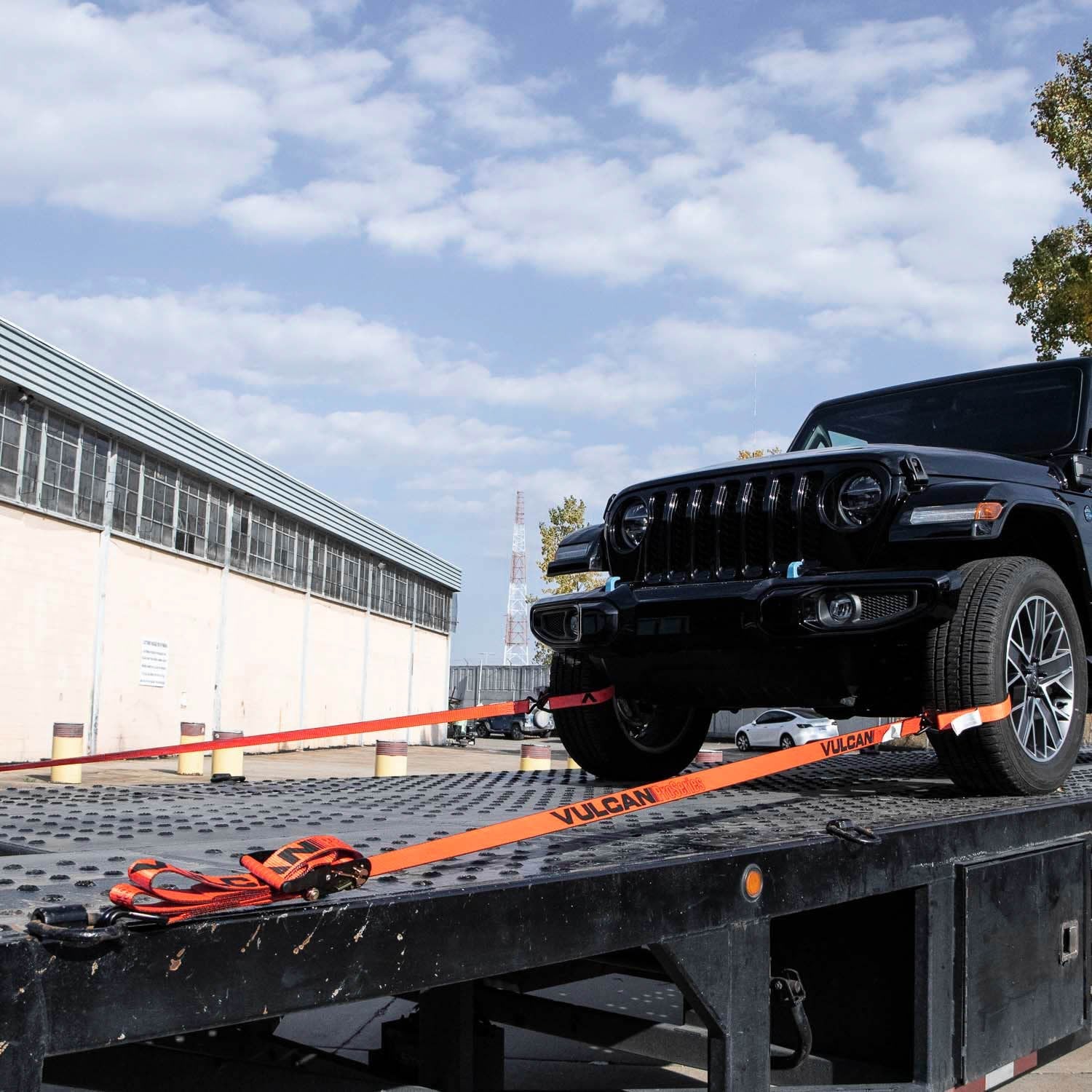 - PROFESSIONAL GRADE TIE DOWNS - Professional truck, trailer, and flat bed operators choose Vulcan cargo control systems to haul millions of loads every year. Vulcan is recognized as the most qualified, most experienced, cargo tie down manufacturer in the world. Work with confidence, knowing that this heavy duty ratchet strap is backed by the 50 years of manufacturing expertise that only Vulcan can provide.