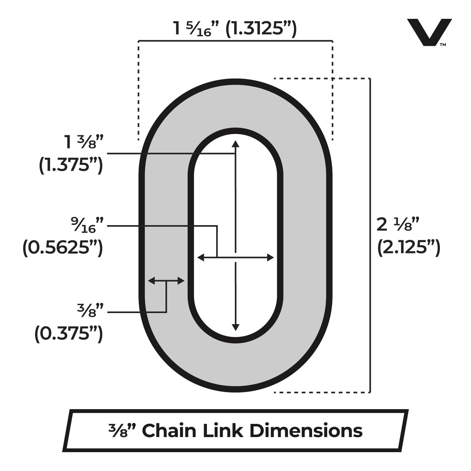 - Chain length may vary + / - the length of one link of chain – up to 2 inches on 3/8 inch chain and up to 1.5 inches on 5/16 inch chain