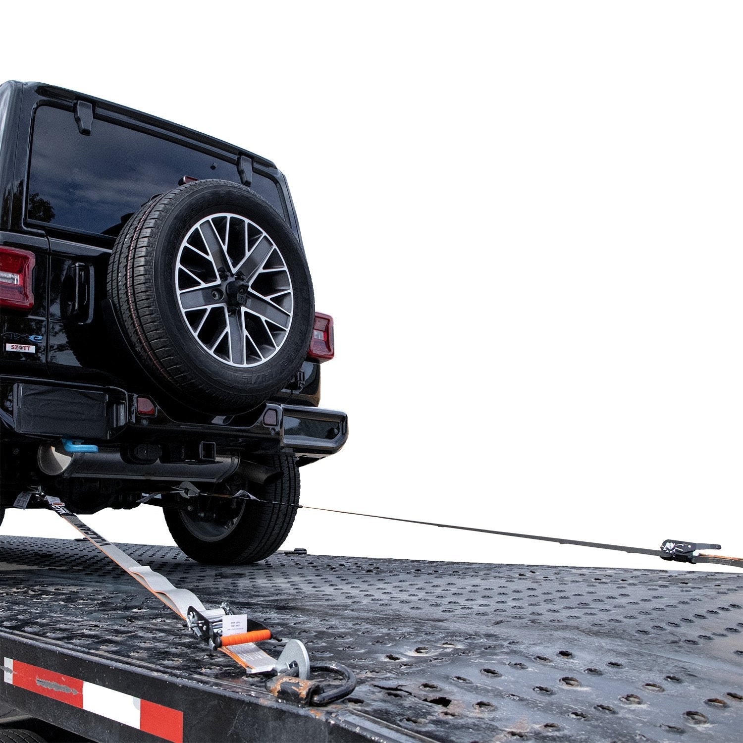 - EASY TO USE - The tie down features latching twisted snap hooks for quick, secure connections with d rings and other anchor points on your load or deck. It is perfect for roll backs, trailers or car carriers. These all-purpose tie downs do more than just secure vehicles. The 96 inch long strap is ideal for easy positioning, even in tight spaces and low clearance applications.