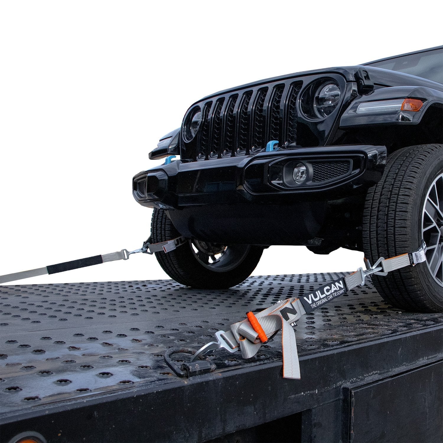 - PROFESSIONAL GRADE TIE DOWNS - Professional truck, trailer, and flat bed operators choose Vulcan cargo control systems to haul millions of loads every year. Vulcan is recognized as the most qualified, most experienced, cargo tie down manufacturer in the world. Work with confidence, knowing that this heavy duty tiedown is backed by the 50 years of manufacturing expertise that only Vulcan can provide.