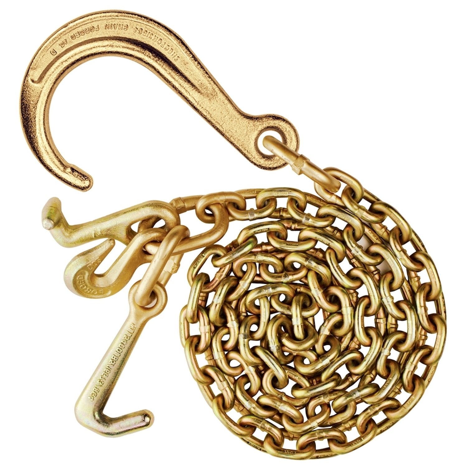 - INDUSTRIAL GRADE COMPONENTS - End #1: Forged Grade 70 8 inch j hook; End #2: Grade 70 5/16 inch forged grab hook, Grade 70 forged 4 inch j hook and alloy t hook.