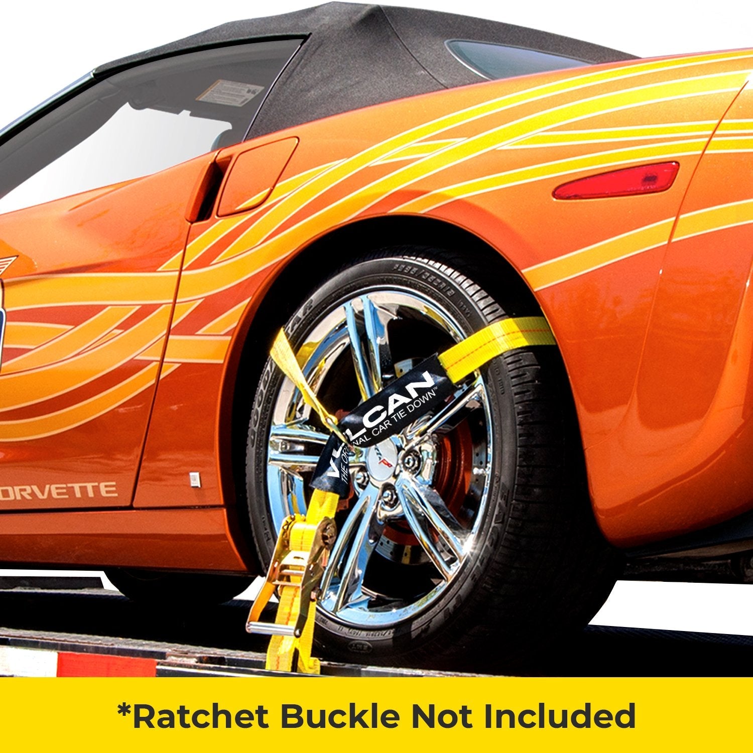 - WORKS WITH ANY 2 INCH WIDE RATCHET BUCKLE - The heavy duty tire strap is designed for use with all 2" ratchet buckle. The plain end of the strap has been heat sealed and easily feeds into the mandrel of any standard 2" tensioning device.