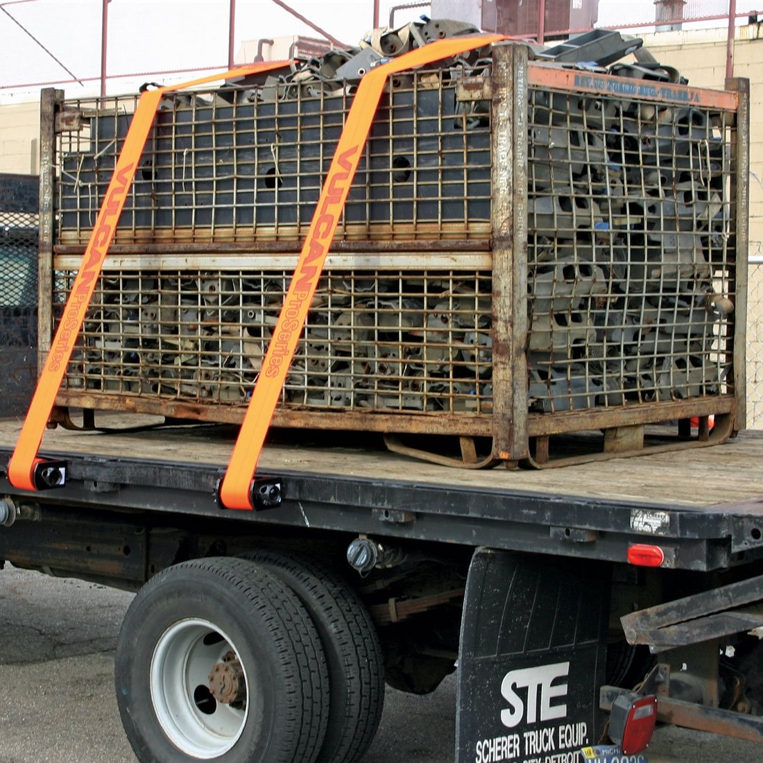 - PROFESSIONAL GRADE TIE DOWNS - Professional truck, trailer, and flat bed operators choose Vulcan cargo control systems to haul millions of loads every year. Vulcan is recognized as the most qualified, most experienced, cargo tie down manufacturer in the world. Work with confidence, knowing that this heavy duty winch strap is backed by the 50 years of manufacturing expertise that only Vulcan can provide.