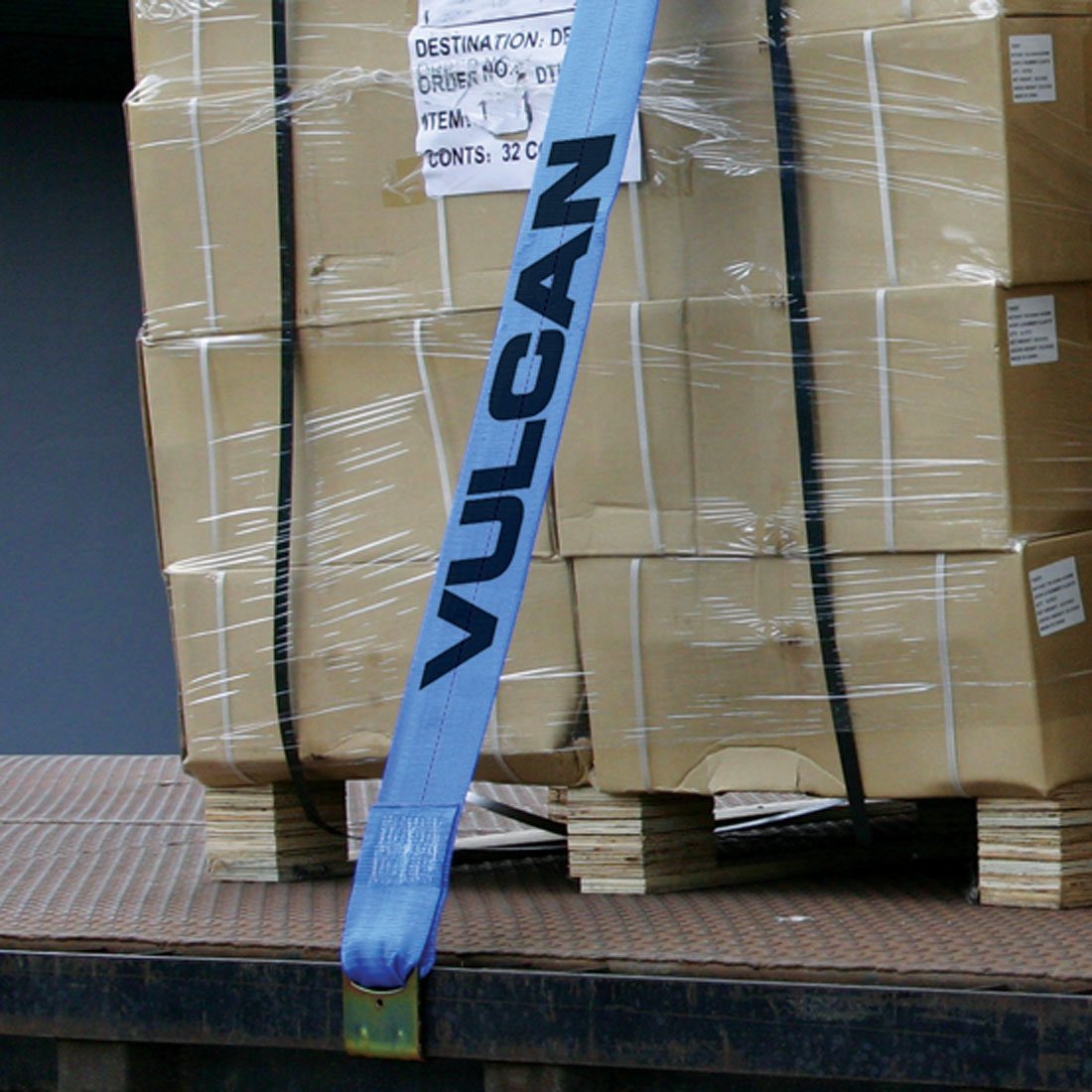 - PROFESSIONAL GRADE TIE DOWNS - Professional truck, trailer, and flat bed operators choose Vulcan cargo control systems to haul millions of loads every year. Vulcan is recognized as the most qualified, most experienced, cargo tie down manufacturer in the world. Work with confidence, knowing that this heavy duty winch strap is backed by the 50 years of manufacturing expertise that only Vulcan can provide.