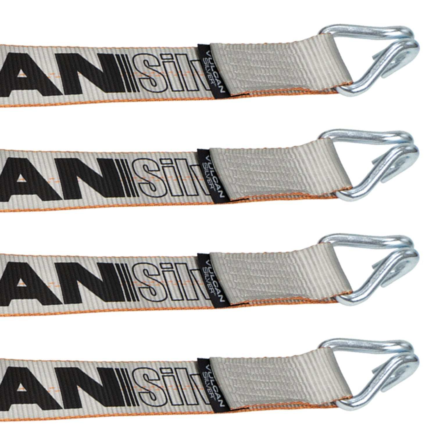 VULCAN Winch Strap with Heavy Wire Hook - 2 Inch x 15 Foot - 4 Pack - Silver Series - 3,300 Pound Safe Working Load